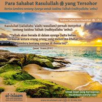 Rasulullah (sallallahu ‘alaihi wasallam) pernah menyebut tentang Saidina Talhah ‎‎(radhiyallahu ‘anhu):‎ طلحة في الجنة (هو ممن بشّر بالجنة في الدنيا) (جامع الترمذي، الرقم: ٣٧٤٧) “Talhah akan berada di dalam syurga (iaitu beliau termasuk antara orang-orang yang menerima khabar gembira tentang syurga di dunia ini)”. (Jaami’ Tirmizi #3747)‎ Kemurahan Hati Saidina …