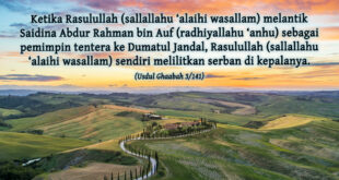 عندما أمّر رسول الله صلى الله عليه وسلم سيدنا عبد الرحمن بن عوف رضي الله عنه على جيش دومة الجندل، عمّمه بيده الشريفة. (من أسد الغابة ٣/١٤١) Ketika Rasulullah (sallallahu ‘alaihi wasallam) melantik Saidina Abdur Rahman bin Auf (radhiyallahu ‘anhu) sebagai pemimpin tentera ke Dumatul Jandal, Rasulullah (sallallahu ‘alaihi wasallam) …