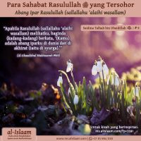 Saidina Talhah (radhiyallahu ‘anhu) menyebutkan: كان النبي صلى الله عليه وسلم إذا رآني قال: (أنت) سِلْفي (عديلي) في الدنيا وسِلْفي في الآخرة (الأحاديث المختارة، الرقم: ٨٤٩) “Apabila Rasulullah (sallallahu ‘alaihi wasallam) melihatku, baginda (kadang-kadang) berkata, ‘(Kamu) adalah abang iparku di dunia dan di akhirat (iaitu di syurga).’” (Al-Ahaadithul Mukhtaarah #849) …