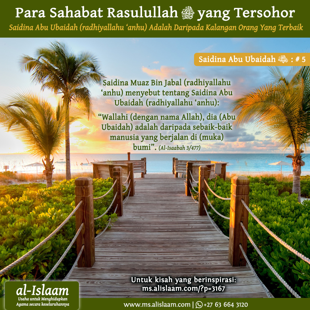 “Wallahi (dengan nama Allah), dia (Abu Ubaidah) adalah daripada sebaik-baik manusia yang berjalan di (muka) bumi”. (Al-Isaabah 3/477)